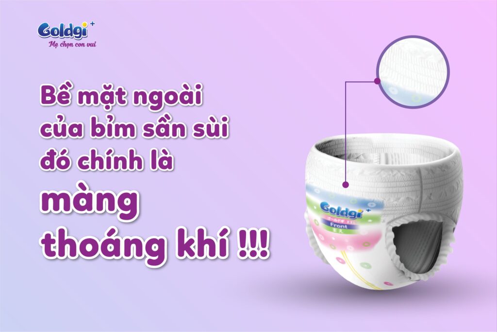 Tã quần Goldgi có băng dính dán miếng tã sau khi sử dụng vô cùng tiện lợi (Băng dính này có tác dụng cuốn gọn bỉm sau khi dùng lại rồi mới cho vào thùng rác)