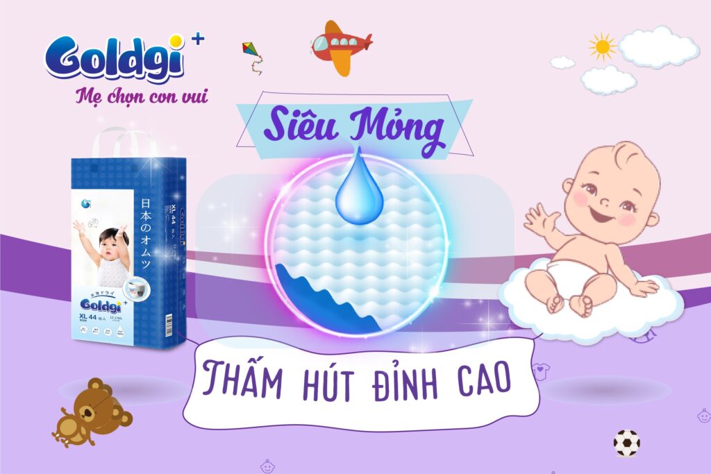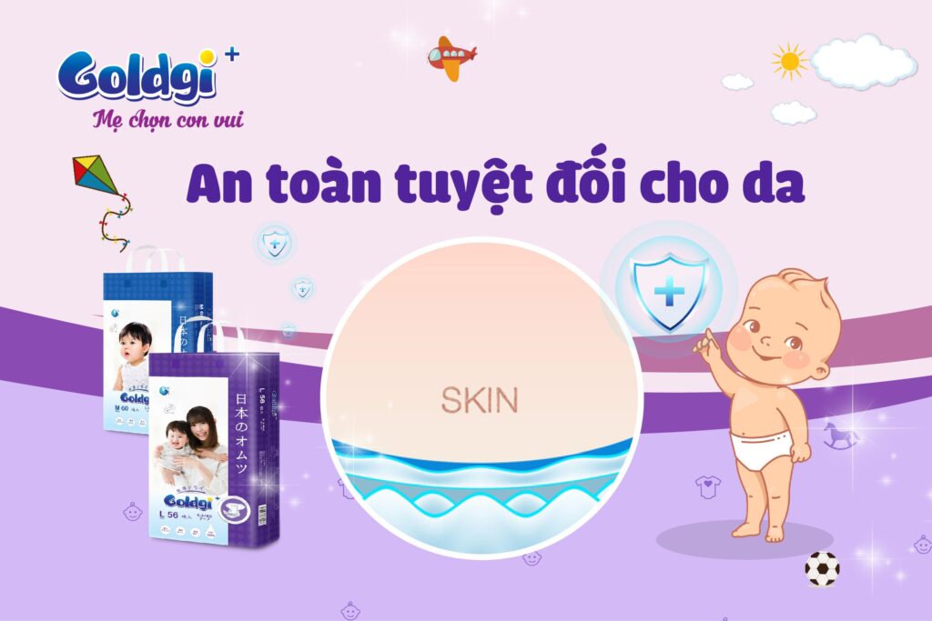- Tã Goldgi+ được sản xuất theo công nghệ hiện đại nhất hiện nay tại Nhật Bản - sử dụng 100% lõi hạt phân tử SAP được liên kết bởi sợi chỉ nhân tạo rayon, tạo ra kết cấu lõi mỏng, có sự liên kết chắc chắn, thấm hút nhanh mà không vón cục, an toàn tuyệt đối cho bé