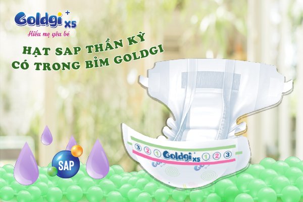 Bỉm Nhật Goldgi+ X5 được sản xuất theo công nghệ hiện đại nhất hiện nay tại Nhật Bản – sử dụng 100% lõi hạt phân tử SAP được liên kết bởi sợi chỉ nhân tạo rayon, tạo ra kết cấu lõi mỏng, có sự liên kết chắc chắn, thấm hút nhanh mà không vón cục, an toàn tuyệt đối cho bé