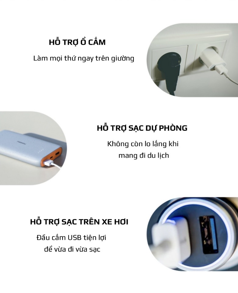 - Thiết kế usb sạc kết nối nguồn điện từ sạc dự phòng điện thoại.