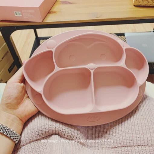 - Cạnh đĩa tròn để dễ múc thức ăn và làm sạch; có 4 miếng bám dính dưới đáy đĩa giúp ngăn ngừa trượt.