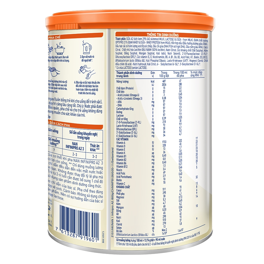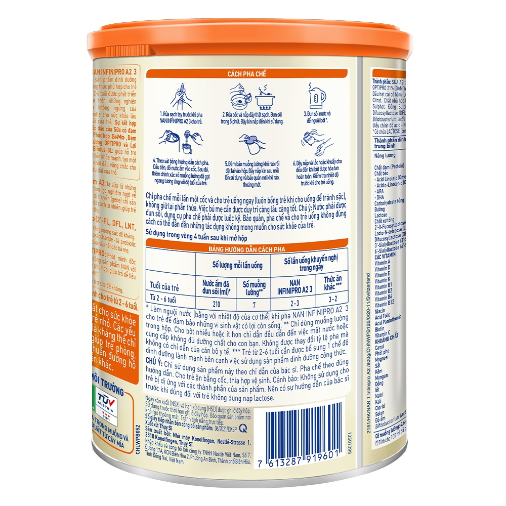 Hướng dẫn pha sữa bột Nestlé NAN InfiniPro A2 số 3 800g (2 - 6 tuổi)