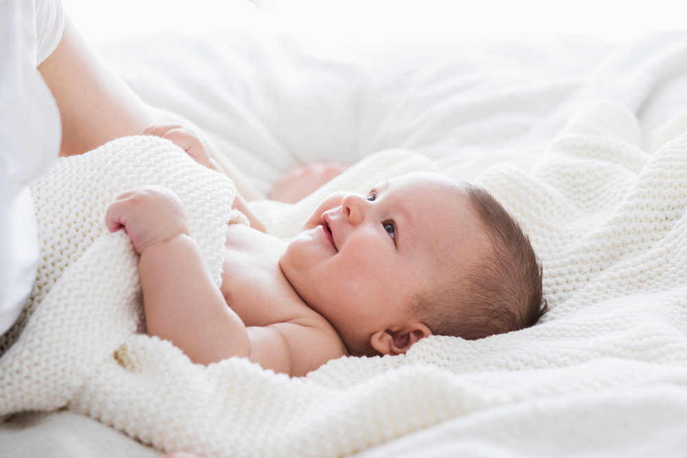 Khi tròn 1 tháng tuổi, bé có thể ngẩng đầu lên khi nằm sấp; biết tạo ra âm thanh, khóc khi muốn giao tiếp với mọi người xung quanh; tìm kiếm sữa và nắm lấy một đồ vật nếu cha mẹ đặt nó vào lòng bàn tay của trẻ.