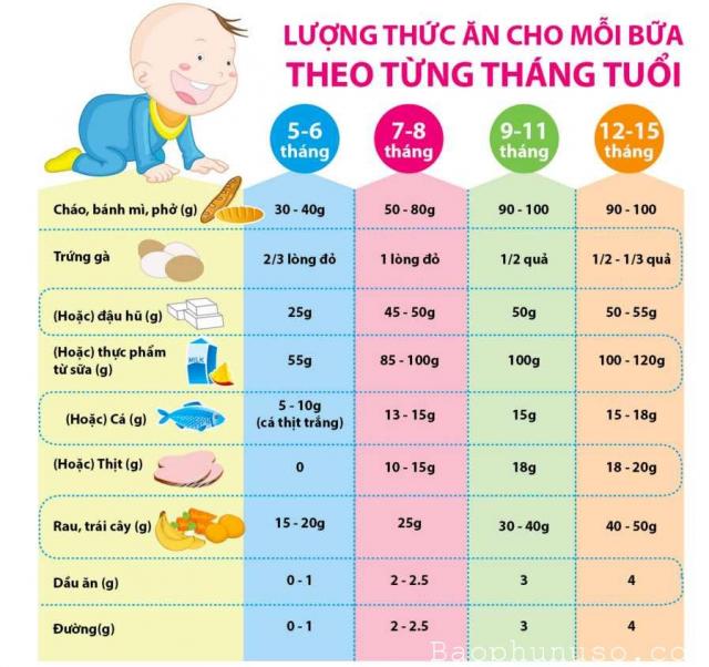 Chế độ ăn dặm cho em bé 8 tháng tuổi :
