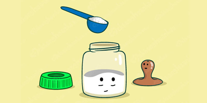 Bước 4: Dùng muỗng đo lường lấy lượng sữa bột theo hướng dẫn trên hộp sữa, không lấy đầy muỗng mà phải gạt ngang muỗng lường bằng dụng cụ gạt (dao hoặc cán muỗng sạch).